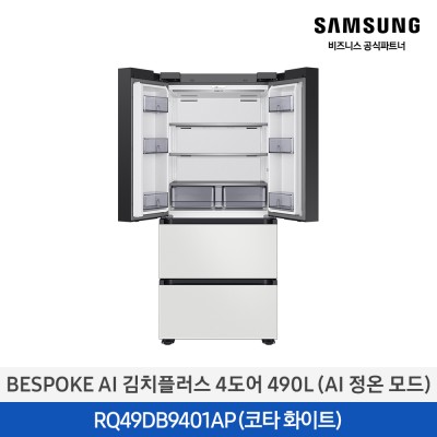 [삼성전자] BESPOKE AI 김치플러스 김치냉장고 4도어 프리스탠딩 490L 코타화이트 1등급 RQ49DB9401AP01